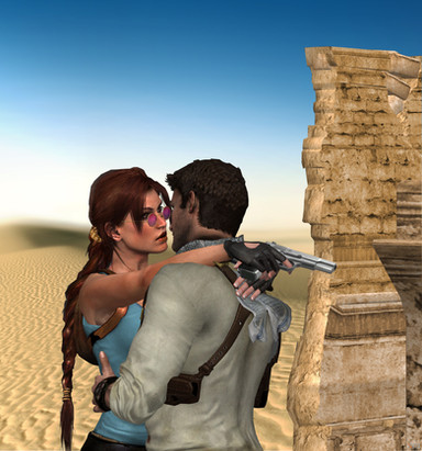 The fourth installment in the Lara Goes Uncharted series. I apologize in advance to all the Chloe fans, as I took her out of this particular screenshot from Uncharted 2 and put Lara there instead.As for Lara, this may look a bit out of character for her but maybe she's not actually trying to seduce Nate... She could be just pretending...