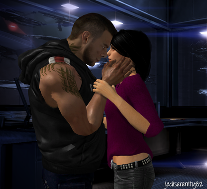 I think you did an awesome job with their smiles. They look sexy and the way Kaidan is smiling at her I think that he has naughty things in mind