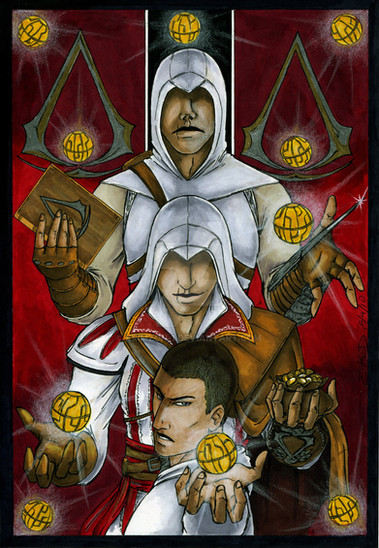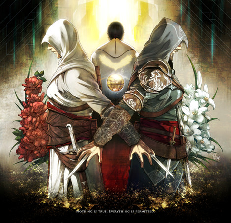 This one is obviously inspired by Assassin's Creed Revelations. I secretly wish that Ezio and Altair had actually met during their respective lifetime and perhaps get the chance to fight side by side. Now that would have been truly epic.So this is just a figment of my imagination, a dream of what may have happened somewhere in the Animus or in the afterlife...