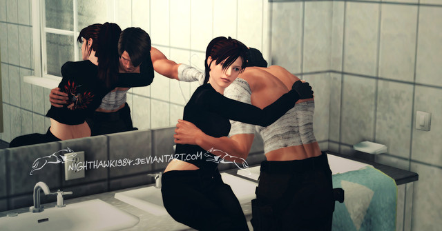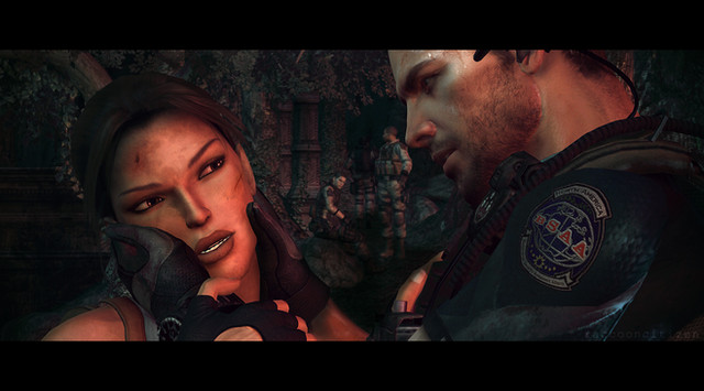 Lara - "When this is over, you and I are going to get as far away from this place as possible. It'll be just you and me, and no one will be able to find us, I can promise you that..."This is Lara Croft (Tomb Raider) and Sam Fisher (Splinter Cell) and I made this piece shortly after this one: We're in This Together at least a year ago. I hadn't uploaded it here because for some reason I wasn't totally happy with it. But looking at it again, I'm thinking it's not bad at all... it was rather hard to do, actually, because Sam here is totally static and couldn't be posed at all since he's part of a screenshot.