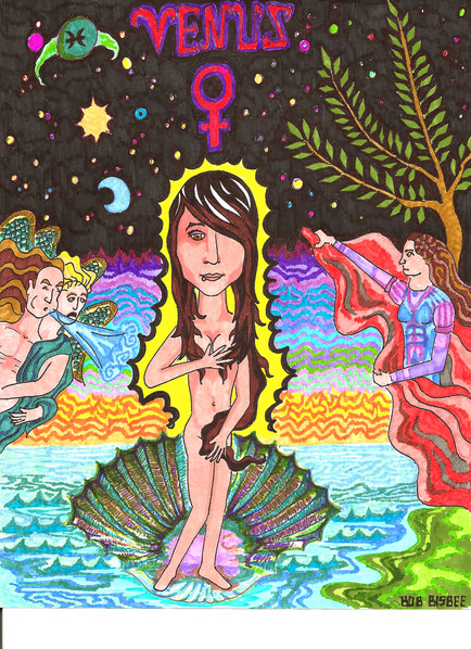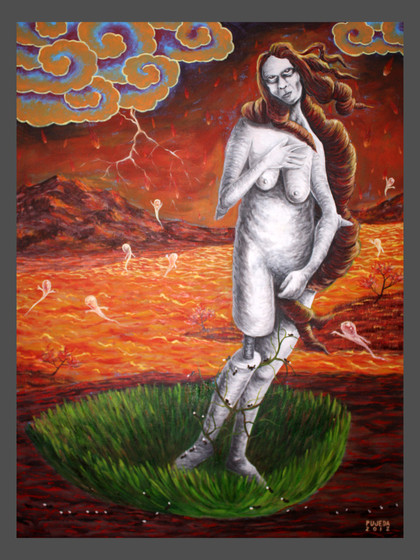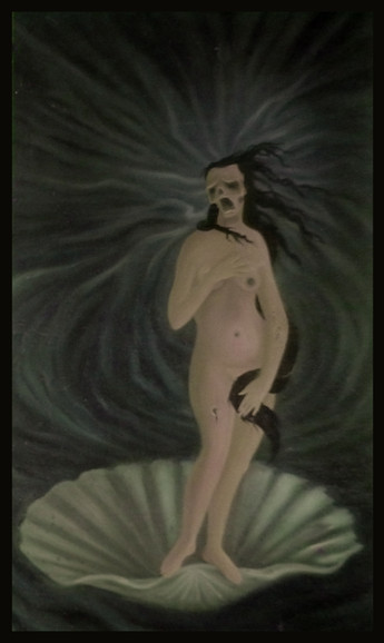 VENUS | 2008-2010 | 180x250 cm | Painting UV active acrylic on vinylThe painting is based on the famous painting "The Birth of Venus" by Sandro Botticelli. In a very limited color spectrum of UV active paint, looking for his ideal of beauty for the past 500 years since its creation.