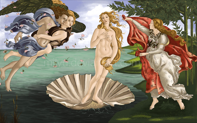 Legend of the Birth of Venus, says that the Titan Cronus cut off his father Uranus genitals and threw them into the sea. Then, around the whole of Cyprus created a foam, from which emerged as a mature young woman, Venus.