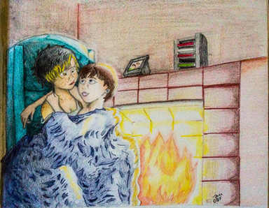 The new father and mother, carrying the baby off to bed after a long day. I thought this was pretty cute. :3The new father is carrying the young one to bed after a long day, but mom wants to stop them to give the baby a good night kiss.