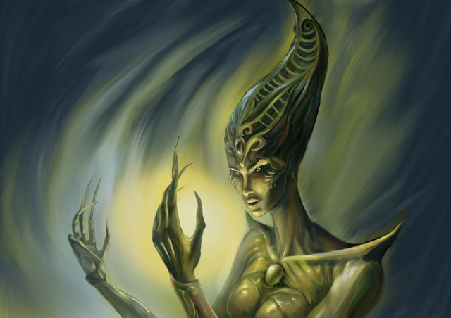 #alien #alienorb #alienportrait #jungle #aliengod #alienstatue #monsterportrait #goldandgreen #goldensentry #aliencreature #digitalpainting #aztecmayan
