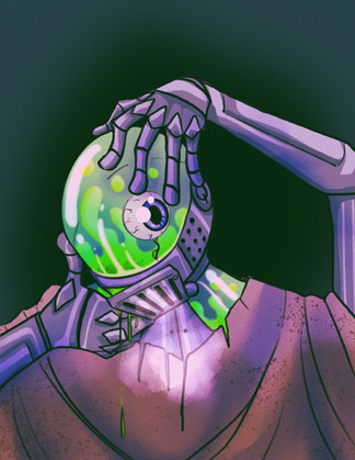 The hair reminds me a bit of jellyfish tentacles. Is that a bit of deliberate visual punning?