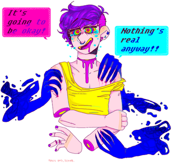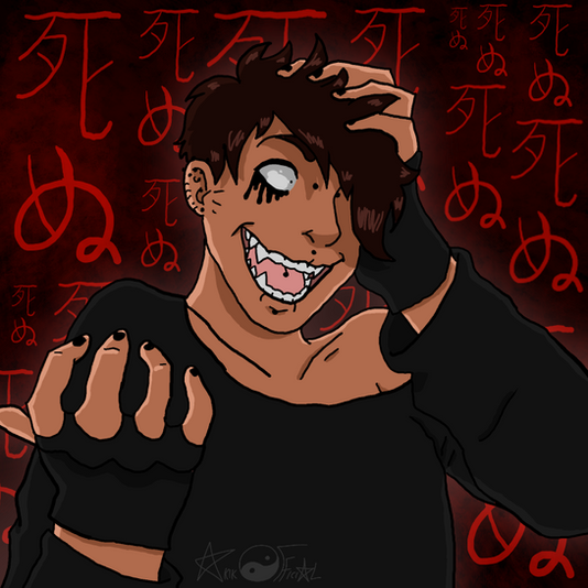 well theres me or my rendition of me he has a bottom lip ring ;w; and a beard thing from his bottom lip to his chin and its kinda thin like a strip?