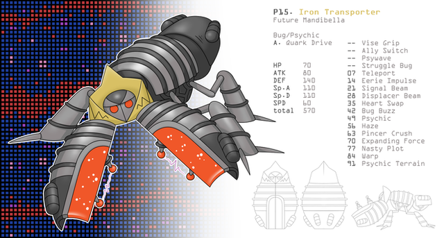 Made another paradox mon, this time a future one! Iron Slugger is mostly based on fighting and punching, along with a peculiar ability that sets it apart from Pyukumuku...