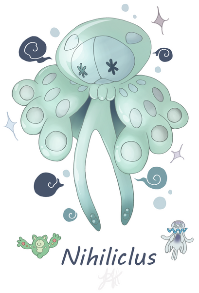Here is an old Fakémon of mine, Nimbox! It's based on box jellyfish, clouds, and acid rain! I initially created it for a friend's old Fakémon region, but it never happened, so I decided to remake it!