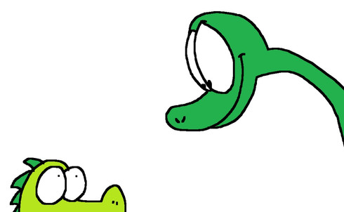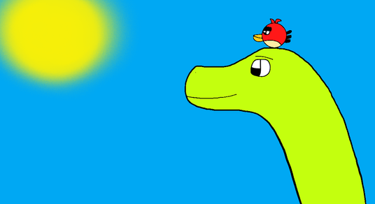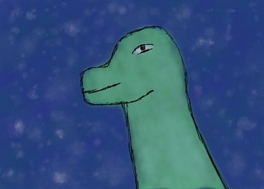 Featuring a new character of mine that isn't named yet and is currently just a head who is staring into the soul of a deformed sauropod.