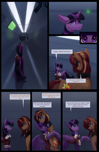 Twilight boards Valuntas Station, a large space station orbiting Equis. This is the beginning of her journey! She doesn't handle space travel very well, however, maybe she will get used to it when it counts!