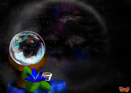 The stark familiarity of the cottage and the boats make a gorgeous contrast with the surreal skyscape! So so beautiful! I wonder if there are worlds with this kind of epic view and the life to observe it?