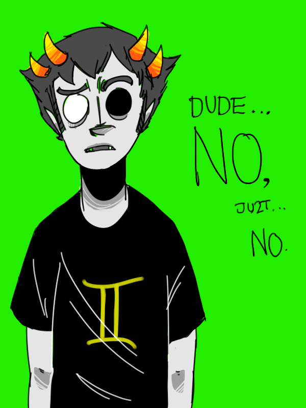 Naw, quick doodle, I was bored. But April is Genderbend month on Facebook for the Homestuck characters.