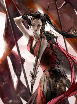 #blackhair #blademaster #blades #bns #chinesedress #fantasy #flatcolor #longhair #redclothes #bladeandsoul