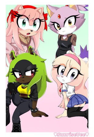Woooh! It is done! FINALLY! I was working on it from like.... spring, i dunno! So! It turned out into a wallpaper in the end. Amy, Cram and Rouge in their Sonic Riders outfits :3It`s 1440 x 900 - my desctop size!