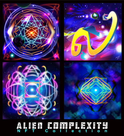In a universe filled with chaos, mysterious beings endowed with bioluminescence are determined to build patterns never seen before and perpetuate them in countless galaxies. Now you can support this whole display of exotic mayhem by purchasing the NFT Collection: Alien Complexity A Journey into the Unexpected. The NFT collection of Alien Complexity art, it is an imagination exercise based on the idea that an alien life, civilization or presence can be completely different from any reference or notion we have of reality.