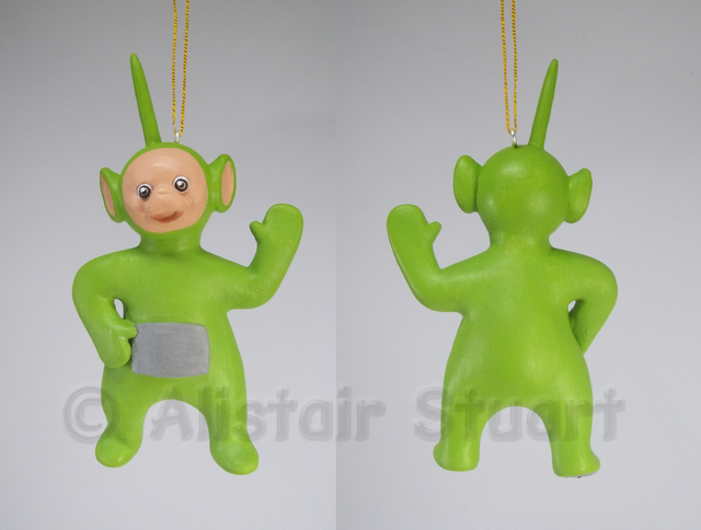 He stands just 4cm tall without the base. He is made entirely out of Fimo polymer clay and the base is a painted wooden disc.