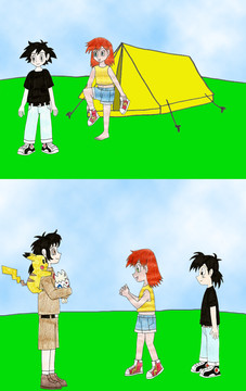 So here is Ash, along with Misty and Brock having a slumber party in Middle Earth under the watchful Eye of Sauron.