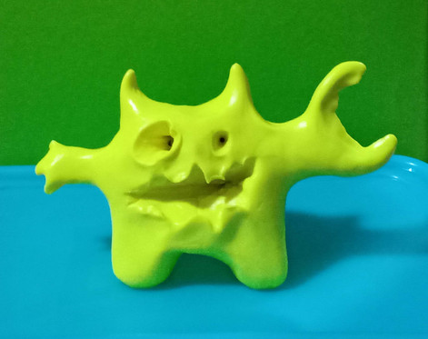 This creature was a present from a friend for Christmas.He arrived in kit form: three tubs of coloured "monster modeling clay" a pair of googly eyes and an instruction sheet.