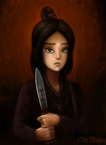The colouring is in a class of it's own. How you managed to use paint and still keep the lines so clean is beyond my imaginaton. Your way of shadowing is well done and gives the painting the right 3D effect, and every colour seems to be fitting for it's use. The best coloring job you did on this painting is in my option her eyes. Even though she's not looking directly at the viewer her gaze is digging it's way into ones soul. They're so full of life, anger and will to fight! (I'm a sucker for strong woman...)