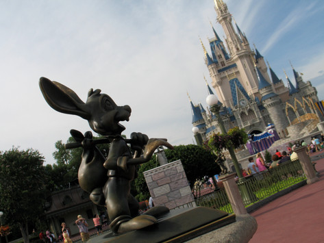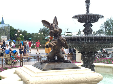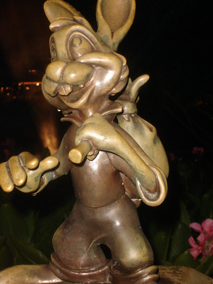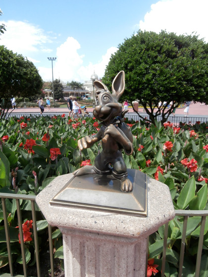 There's a statue of Walt Disney and Mickey called "Partners" in front of the castle. A bunch of smaller statues of other characters surround "Partners." This is one of them.