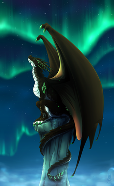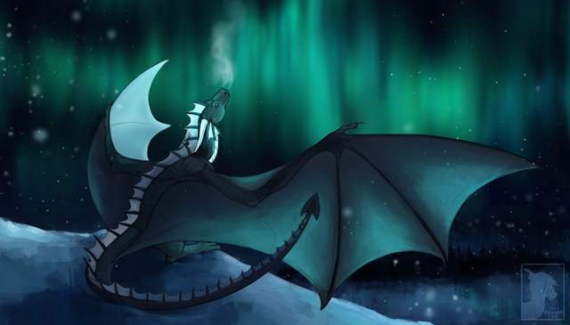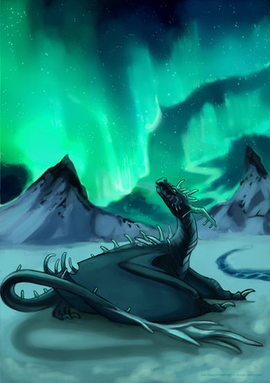 #artic #background #digitalpainting #dragon #fantasycreature #fantasyillustration #ice #illustration #nature #night #photoshop #sky #snow #auroraborealis #westerndragon