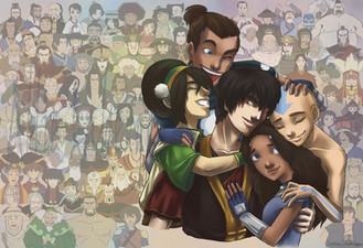 I really love how obvious their personalities all are in this piece They aged, but still look like themselves (I love how much Sokka looks like his Dad, they really are *so* alike in every way). Suki is great, especially her perfect expression (which she likely wears 95% of the time, knowing Sokka). Aang is always adorable, but I definitely dig his finally getting taller than Katara xD. I don't know why, but his being so much shorter really threw me off (even though I adore them together).