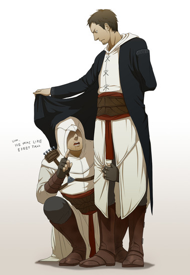This is a part of the art trade with . Her idea was to draw Altair and Cesare swapping their clothes.As you can see, I was supposed to draw Cesare x)