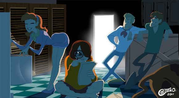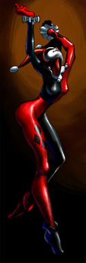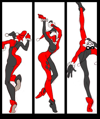 Well, apparently you two work very well together. I reeeeeally like the lanky anatomy of your drawing, especially how thin the wist and feet are, hehe. Somehow it seems fitting given the name and action. I get a kick out of the expression as well - I love big solid teeth. <3 Neat piece!