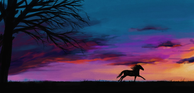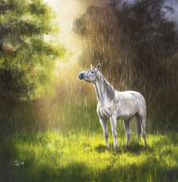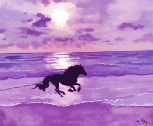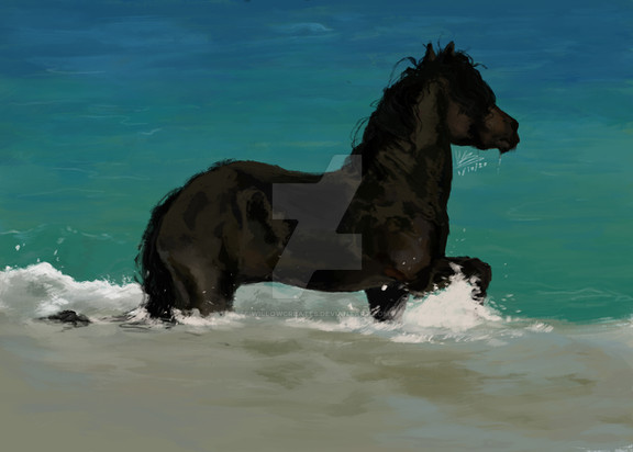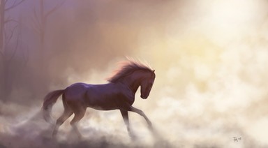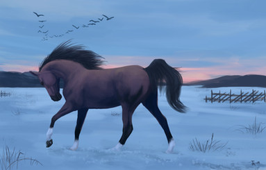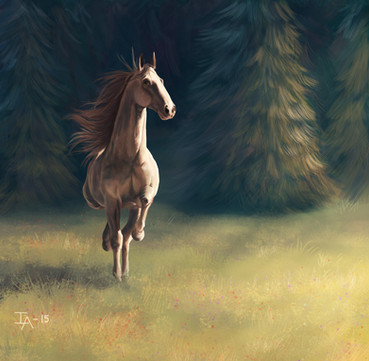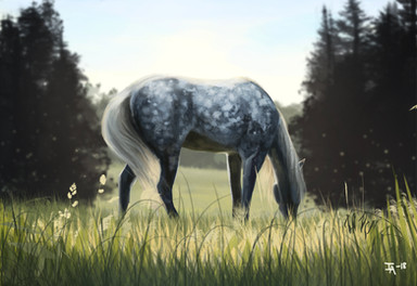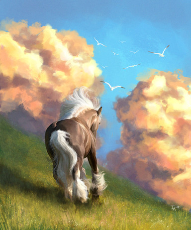 Commission for the-horse-lover , of her friend's gorgeous horse Ivan-Reno who sadly passed away.I was asked to make a somewhat dreamy-like painting which still preserved his elegance and class, so I had the idea of him being somewhere inbetween heaven and earth, and came up with this!