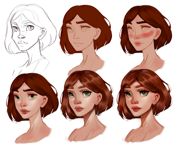Blush - This is where we add the red tints to the skin! Cheeks, shoulders and noses tend to have more colour (in my style at least!), so just add shades of pink and blend them out. Use a multiply layer for the best results!