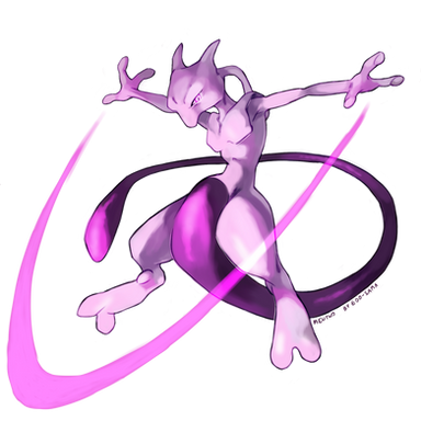 In particular the mewtwo of the first film and the manga. (So I put the giant spoon)