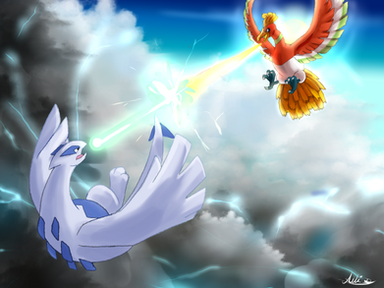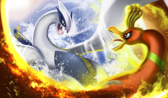 Love the way you did the water and flames in a traditional way. And the attack that Lugia looks about to perform.. I like the detail and thought of it. And of course I love the legendaries!!!