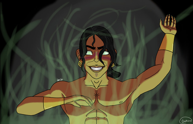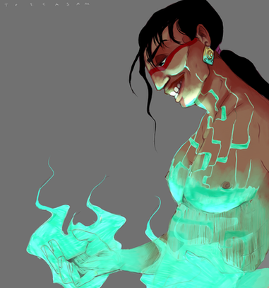 Tzekel-kan just doing his thing 😎 Was super excited to draw smoke and do dramatic lighting, it was such a cool part of his character.Drawn to an inordinate amount of Tzolk'in and This Morn Omina