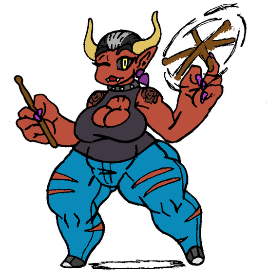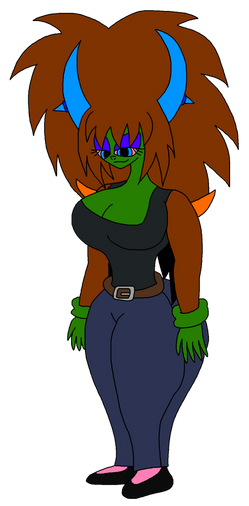Might as well update some of the main cast of LL. Punkie's old design, was always a bit too close to Spartagirl's, so the hair style was changed. Her skin tone, is also noticeably darker, and her horns, are now more centered, and lowered.Related content