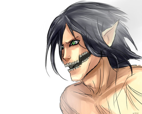 been a while since i havent draw this bae. He has blue eyes yes, cause i never really considered Eren and him were related. Even if it IS Eren, it doesnt seem right to me. i think that they should be separate characters, but it would fuck up all the Aot storyline, so i guess its kinda like an AU. long story-short, i feel like if they would be separate characters, The Rogue titan would have blue eyes instead of Eren's emerald eyes. I was feeling low so yeah thats why hes crying.Character from snk/ Hajime Isayama