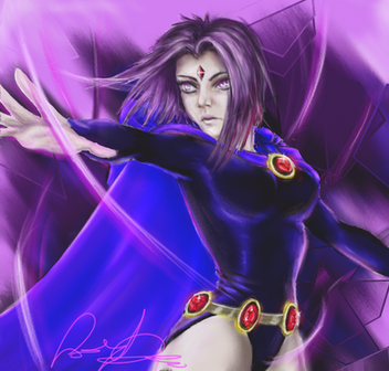 Foreshortening is still my archenemy. I've been meaning to make a Raven piece for a long long time, I think she's a great character, but I kept abandoning my attempts. I finally found the energy and time to give her a little bit of my time (by 'a little bit' I mean around 6-7 hours) and came up with this. It is heavily inspired by sakimichan's works, I look up to her so much, I want to learn from her, she's just got this really cool technique, so most of the credits for this artwork go to her.Done in Photoshop.