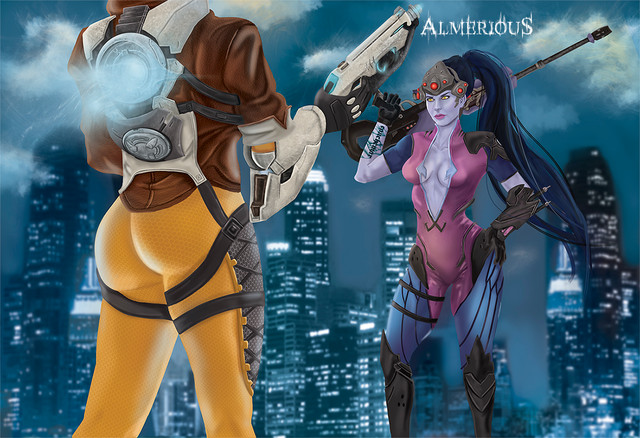 with the texture of her suit. The shine and shadows are really well blended, and I love how you even included the different coloured highlights from the lights of the buildings onto her suit.