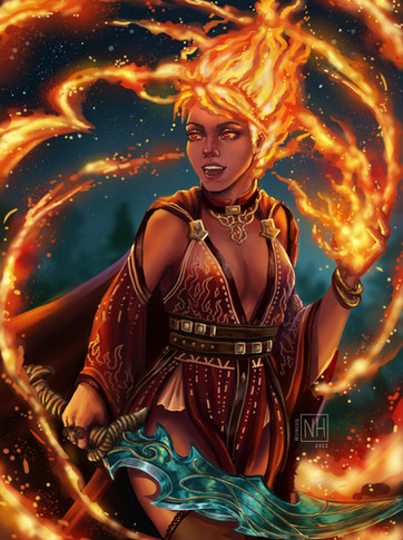 inspired by the ability called combustion, I finally finished an illustration of my mage, Eivor!