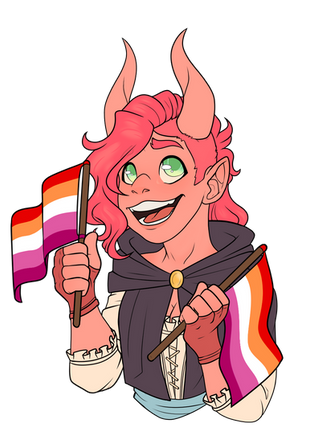 a drawing of my sweet paladin girl Admere celebrating pride!!