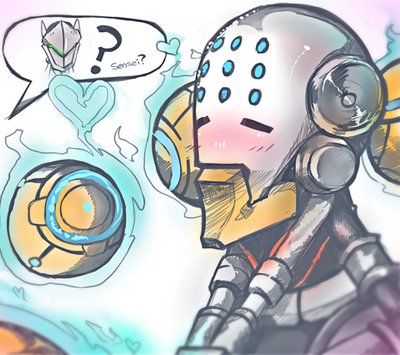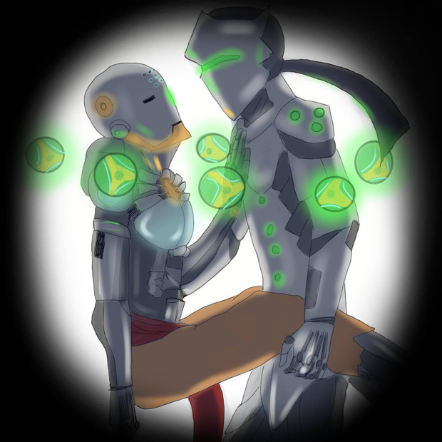 You'd think I'd be like "no more robots" and yet. And yet. I keep drawing them lmaoThis was a request... I think I made Genji a bit too chunky but like let's just say he was sneaking some snacks at the monastery hahaha