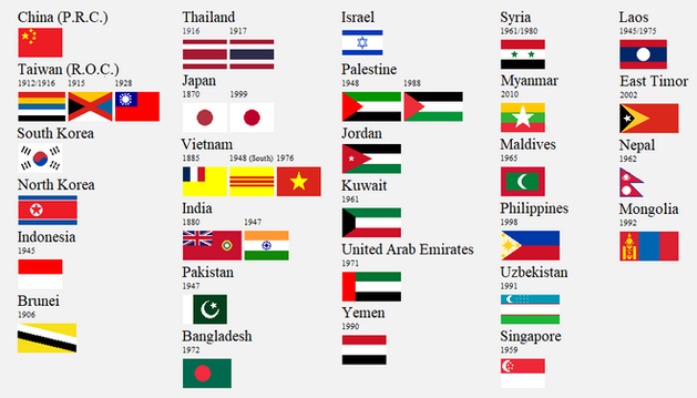 Bhutan flag is actually Brunei. Bhutan is missing.