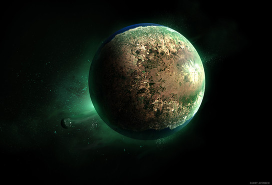 I really like this picture. It looks as if this was an ocean world, which is highly likely. The vision is really good. The originality is beyond 5 stars, about 100 stars. This is a really good picture. The technique is beyond 5 stars as well, at least 500 stars, I say. The impact is a very good touch. It may not have moons, but it could, as it is in its star's habitable zone, it is very likely to have moons. This is a very good picture. So let me say one more thing, keep up the good work! e.deviantart.net/emoticons/b/b… " width="15" height="15" alt="