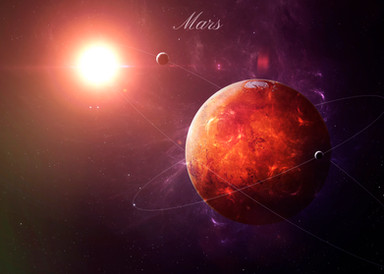 mars is the fourth planet from the sun and second smallest planet in the solar system. it is named after the god of war. mars also goes by the name 'the red planet' because of its reddish appearance in the sky. mars also exists in the sun's habitable zone just like earth, so it also has water on its surface, but it is placed further out in the zone and so water mainly exists as ice at the poles.