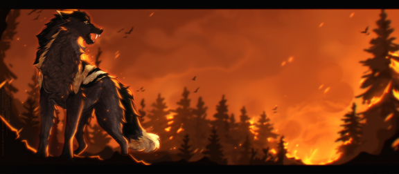 He smiled despite his breath being slowly sucked out from his lungs, and he charged into the flames. He danced and sang like a puppy would through the woods on fire, as if he were the happiest and freest wolf in the world.