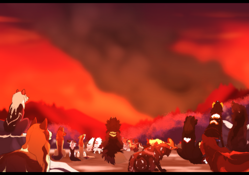 "Men always think about the past before he dies, as if he were frantically searching for proof that he lived at all."The loss was overwhelming to Velkan. The night that Alana died in his paws was the night he rose to his paws. Brain numb, body numb, soul numb, he scarcely thought about anyone. It hurt enough as it was. Still, the rational part of him wondered what exactly it was he thought he was doing; was Kahni wrong? He was not a brave wolf at all right now. Running head-first into the flames and smoke, disappearing in its consuming veil. Leaving all his loved ones and friends and pack-mates behind.