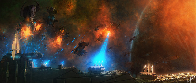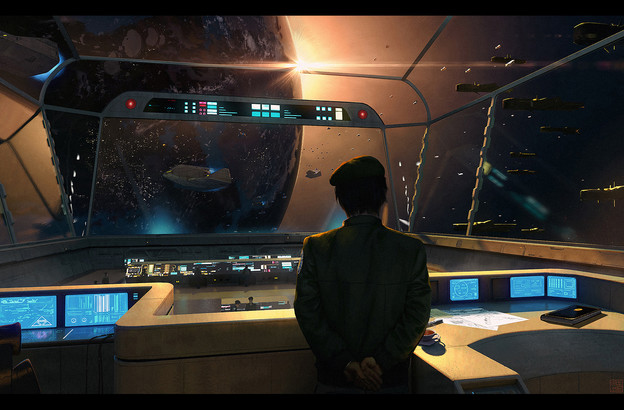 As the Admiral's flagship is overrun by enemy fire the captain issues his last command, to evacuate The Perseus Demise. He stays behind, walking through collapsed hallways, finally stopping on one of the cargo bays. Staring through the glass he awaits the sinking into the planet accompanied by his trusty robot friend remembering his days as a cargo worker. He started as a 16 years old boy grease monkey and now 5 decades later, as the admiral he gladly meets his end at the place where his career started. It's ok, the fleet finally freed their home planet, so it's ok to contemplate the lights of the void one last time. "See you on the other side comrades"