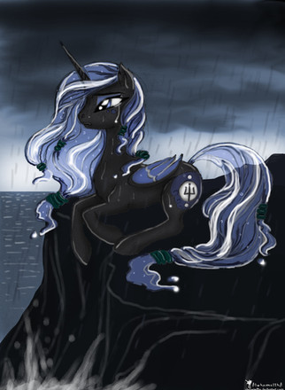 You always do side views, or 3/4. I never saw from you any front view or a more spectacular like... imagine seeing it from a bit under. A different angle, this is it. It reminds me of the Nightmare Moon drawing. Here everyone will agree that Rarity came out spectacular! But... I see light, yet no shadow on the rock? Peter Pan reference! e.deviantart.net/emoticons/b/b… " width="15" height="15" alt="