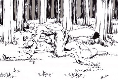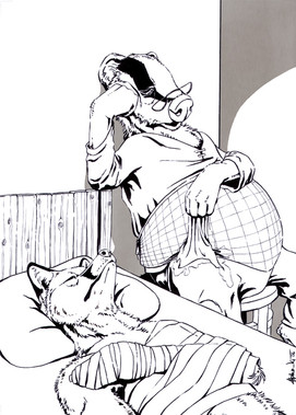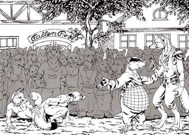 My fox and I did a bookproject together. He wrote four wonderful storries (in German only) and I illustraded them. This is one of my favourite pictures.Extreme shortcut about the story: