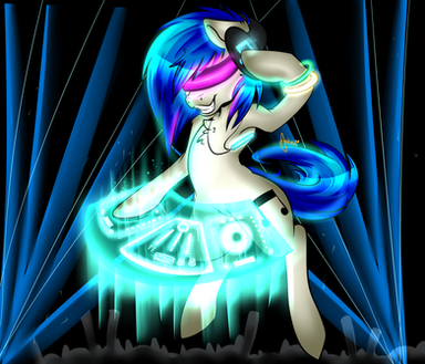 Rarity may be my fav pony, but DJ PON-3 is by far the most fun to work around. I wanted to try and add as many features and effects as I could to make it look like a decent stage, but everything started bogging down my pc (it's slightly old).Both DJ PON-3 vectors and the Applejack Daniel's whiskey bottle (hard to see) made by