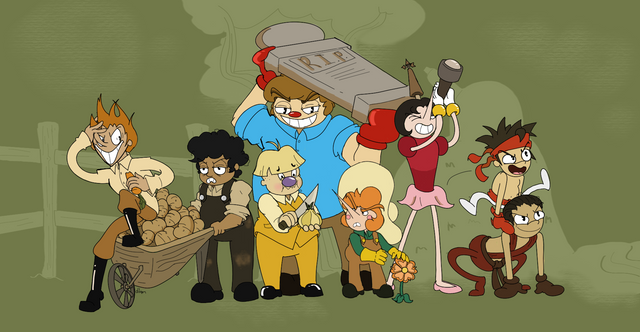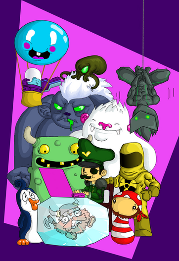 Deponia is a series of games by daedalic entertainment and available on steamPink elephant, Tuck, Rufus & Goal, Mc Chronicle, Toni, sunflower and platypus all together having fun at a toxic river